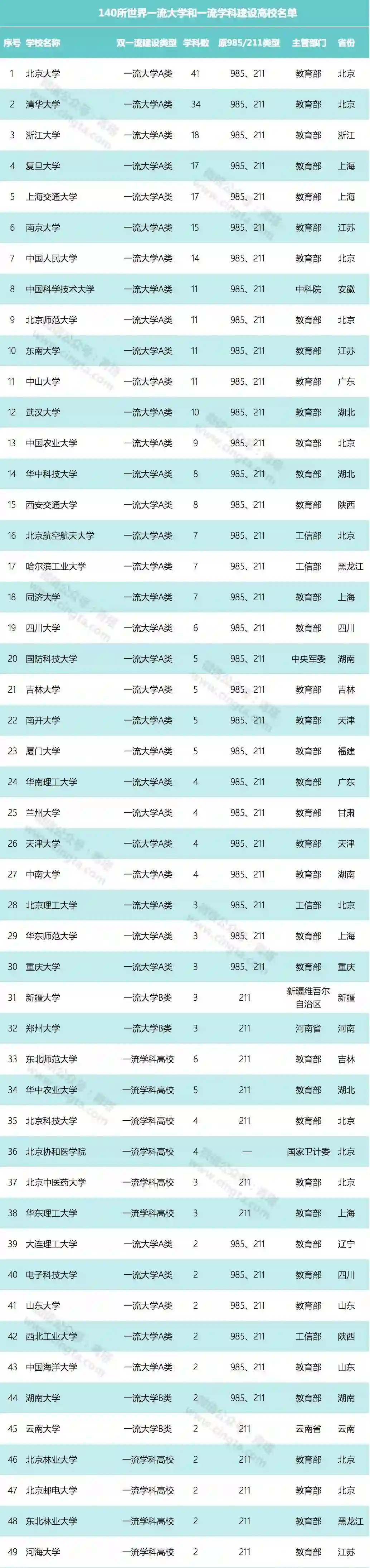 2017年9月21日,教育部、财政部、国家发展改革委日前印发《关于公布世界一流大学和一流学科建设高校及建设学科名单的通知》,正式公布了42所世界一流大学和98所一流学科建设高校及建设学科名单。