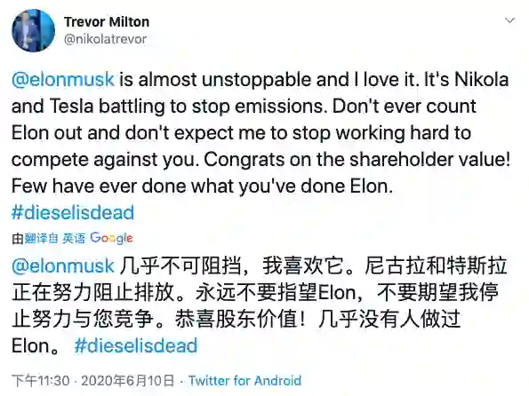 Milton 和马斯克一样,很清楚怎样利用媒体和舆论,来炒作知名度。尼古拉第一次被大众所知,就是 2018 年它把特斯拉告上法庭,起诉特斯拉 Semi 抄袭了自己半挂卡车 Nikola One 的外观设计。官司拖了两年,但并不妨碍尼古拉借此一举成名。