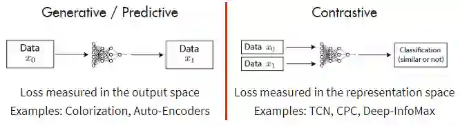 对比预测编码(CPC (van den Oord et al ., 2018) (https://arxiv.org/abs/1807.03748))是一种对比方法,可以应用于任何形式的可以表示为有序序列的数据:文字,语音,视频,甚至图片(一个图像可以看作是一系列像素或patch)。