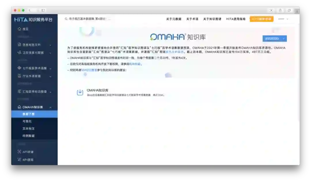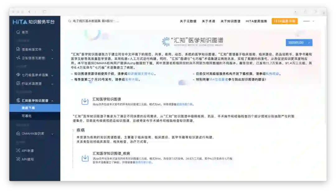 感兴趣的读者可以登录HiTA知识服务平台(hita.omaha.org.cn)下载知识图谱样例数据体验,也可以加入OMAHA获取全量“汇知”图谱资源。