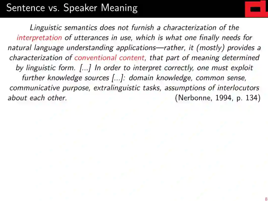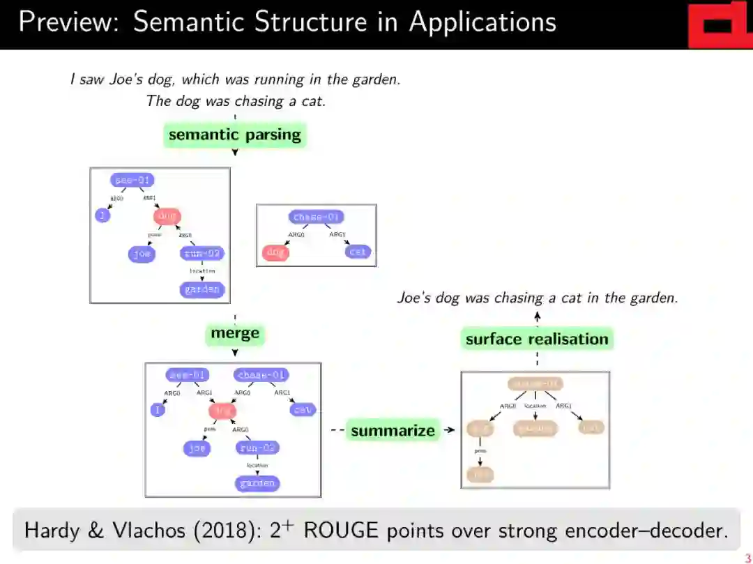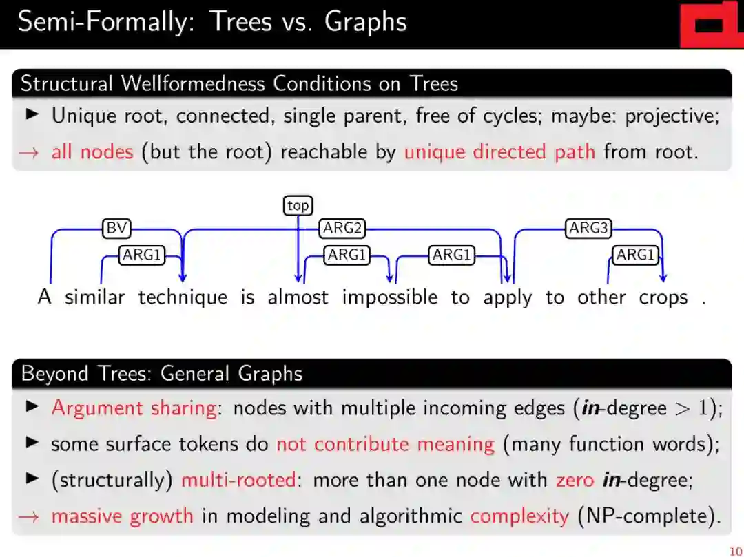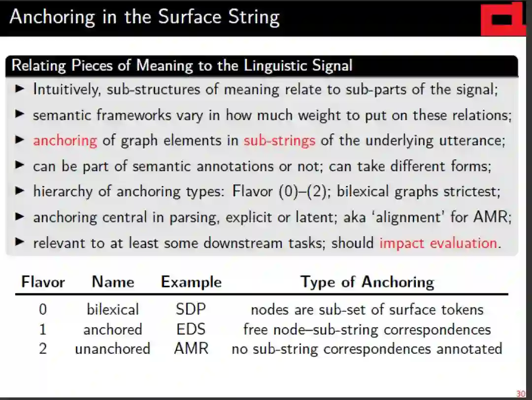 作为对基于向量的高级语义表示的补充,对这种层次结构和离散语义表示的解析自早期以来一直是自然语言理解的基石,并将继续为自然语言的“有意义”做出重要贡献。本教程将(a)简要回顾formal语义学和linguistic语义学的相关背景;(b)对语义图的不同风格和相关术语半正式地定义统一的抽象观点; (c)综述基于图的意思表征的共同框架和现有的图库;(d) 从技术角度介绍如何选择不同的具有代表性的解析方法。