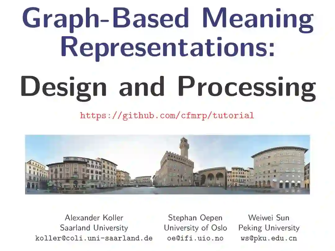 【导读】NLP中,研究人员对以有向图的形式编码和处理句子意思的工作非常感兴趣,出现了很多比较有意思的Paper。但以前很少有研究人员能够概括其发展和统一框架,这次ACL 2019 Tutorial环节,来自萨尔兰大学的Alexander Koller教授、挪威奥斯陆大学Stephan Oepen教授 和北京大学的Weiwei Sun老师这几位专家跟大家介绍了基于图的句子意思表征《Graph-Based Meaning Representations: Design and Processing》,教程全面概述了如何应用语义图的方式进行篇章解析以及描述,对不同的语义图库和相关的解析工作提供一个统一的视角,从而为刚入行的NLP开发人员和用户提供一系列完整的学习和实践。