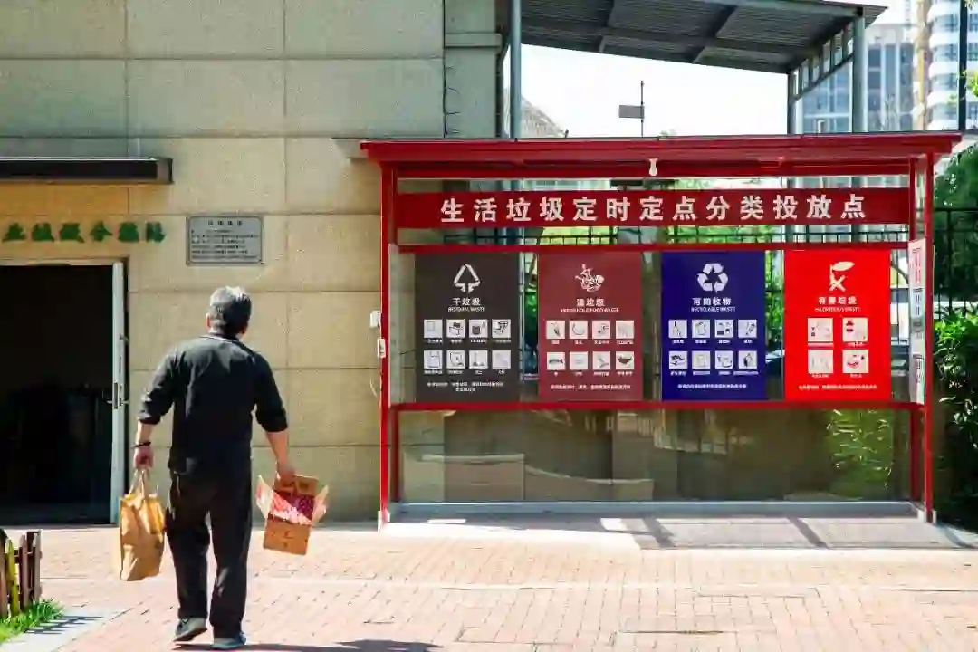 愚园路的保洁员陈师傅以前只负责扫地和收垃圾,现在则要早上4点起床先做完本职工作,再在7点的时候准时守候在垃圾房旁边,指导居民分类。