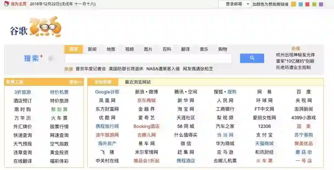 故事要从 10 年前开始说起。2008 年,在 Google 还没有退出中国市场的时候,它从「域名大王」蔡文胜手上买下了 265.com 这个域名,并用它做了一个类似 hao123 的「网址导航」。和 hao123 一样,265.com 也在页面的显著位置提供搜索服务。用户输入关键词,发送搜索请求,265.com 会返回 Google 的搜索结果。