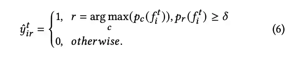 在源域上我们使用预训练过的语义分割模型抽取像素级特征,然后基于高斯混合模型求解各个类别的原型。在目标域上,基于同样的原型抽取出像素级特征后,我们基于公式(4)求解每个像素属于各个高斯混合模型的对数似然值作为特征与原型的相似度度量。最后使用公式(6)基于对数概率密度阈值来筛选出高置的样本。