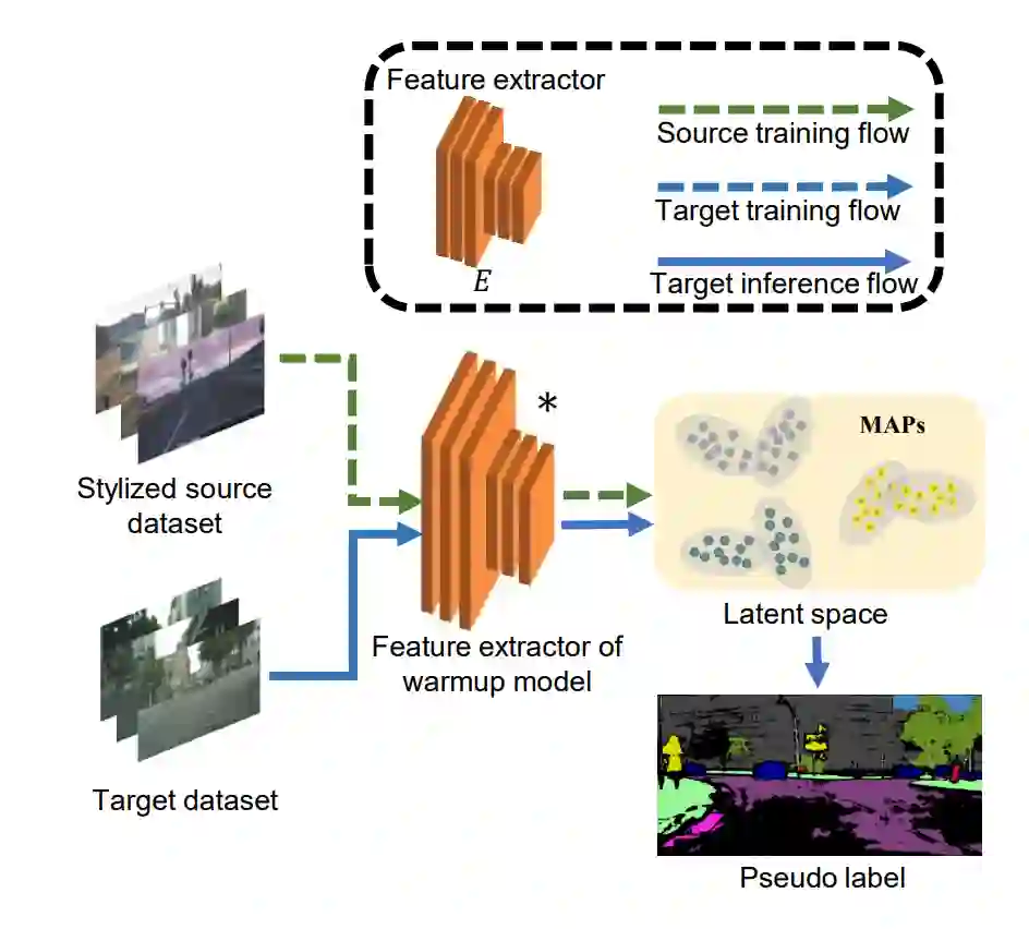 在前向过程,我们改进了传统的自训练方法,引入“多重各向异性原型”来生成更准确的伪标签。在反向过程,我们生成源域可转移图(STM)来表示每个源样本在适应中的重要性,并相应地调整训练损失映射的权重。下面分别介绍前向过程和反向过程。