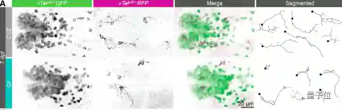 为进一步探究原因,他们通过显微镜观察了重新植入微生物群的斑马鱼大脑神经元发育情况,发现了明显的结构差异。
