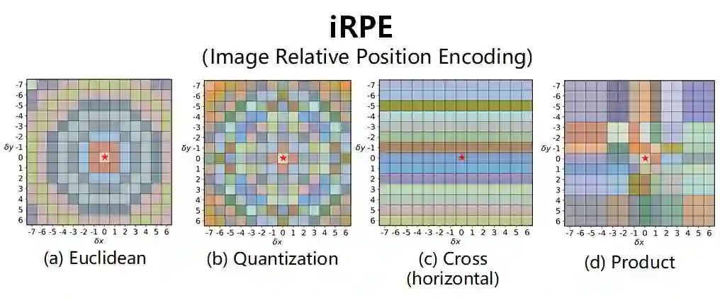 但是,在计算机视觉任务中,相对位置编码的有效性还没有得到很好的研究,甚至还存在争议。因此,作者在本文中先回顾了现有的相对位置编码方法,并分析了它们在视觉Transformer中应用的优缺点。接着,作者提出了新的用于二维图像的相对位置编码方法(iRPE)。iRPE考虑了方向,相对距离,Query的相互作用,以及Self-Attention机制中相对位置embedding。作为一个即插即用的模块,本文提出的iREP是简单并且轻量级的。