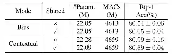 对于bias模式,在head上共享编码时,准确度会显著下降。相比之下,在contextual模式中,两种方案之间的性能差距可以忽略不计。