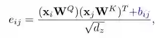 [2]为query引入额外的bias项,并使用正弦公式进行相对位置编码,用公式表示如下: