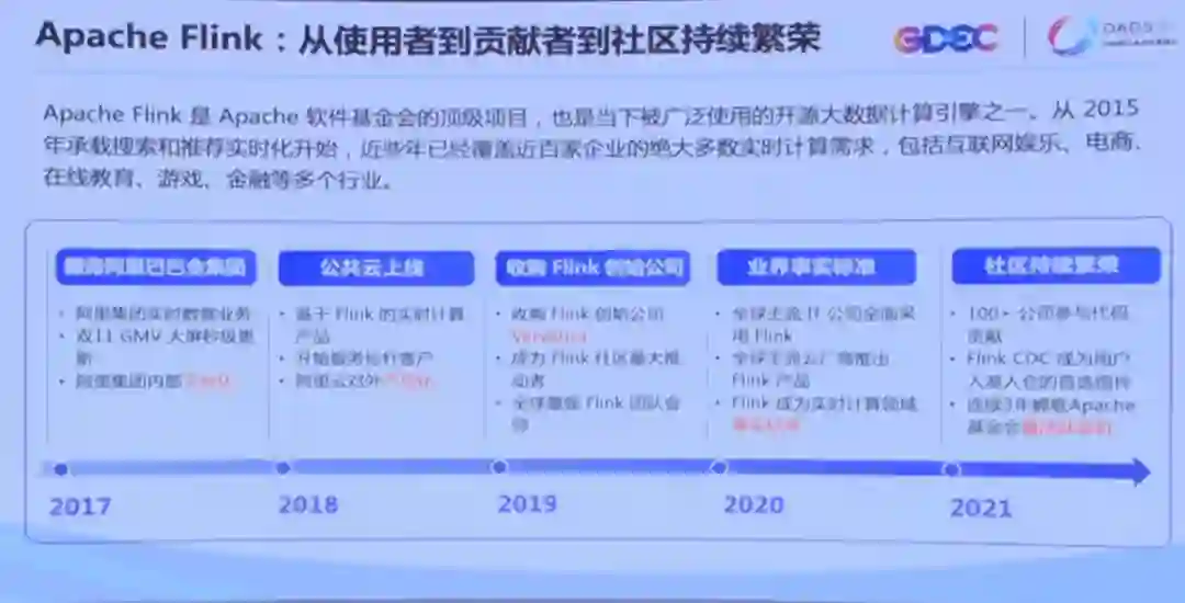 四年以后的今天再回看当年的布局,我们非常欣喜的发现 Flink 已经成为被全球主流的技术公司所采用,也成为实时计算领域的实施标准,而且它的社区也变得更加繁荣。