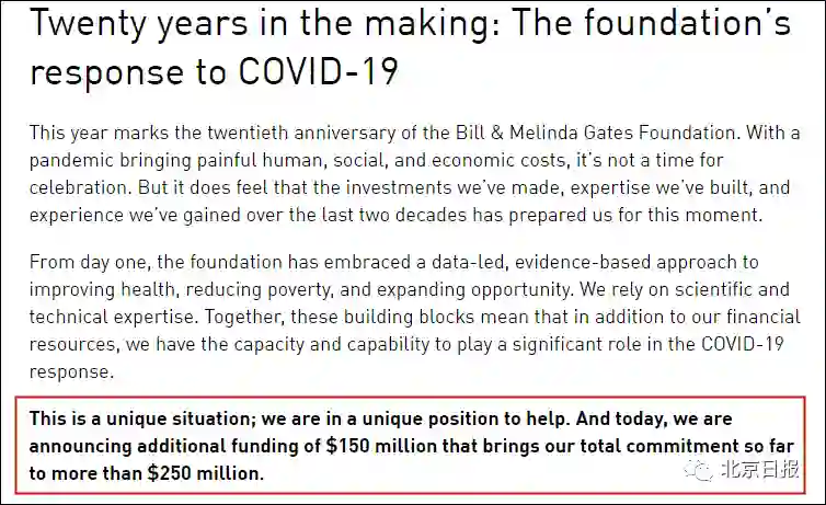 然而,比尔·盖茨及其基金会早在疫情爆发之初就积极参加抗疫,至今已投入数十亿美元为解决全球疫情而努力。