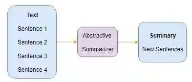 这是一个非常有趣的方法。当中,我们会从原文中生成新的句子。这与我们之前看到的抽取方法形成了对比,之前我们只使用了现存的句子。通过生城式摘要生成的句子可能并未出现在原文中: