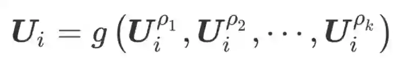 这里,g 是简单的平均操作。然后聚合 I 的表示来更新 User 的表示: