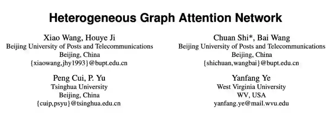 本文由北京邮电大学联合清华大学和西弗吉尼亚大学发表在 WWW 2019 上。 本文首次提出了基于注意力机制的异质图神经网络 Heterogeneous Graph Attention Network (HAN),可以⼴泛地应用于异质图分析。作者也开源了相关的代码和数据: