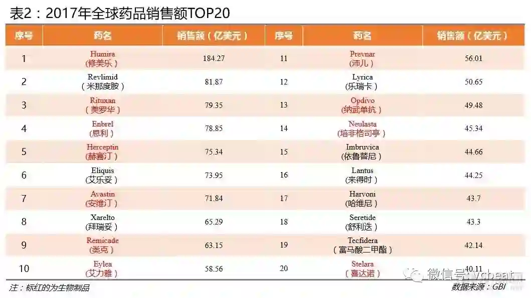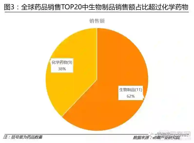 全球药品销售TOP20中,生物制品销售额占比超过化学药物