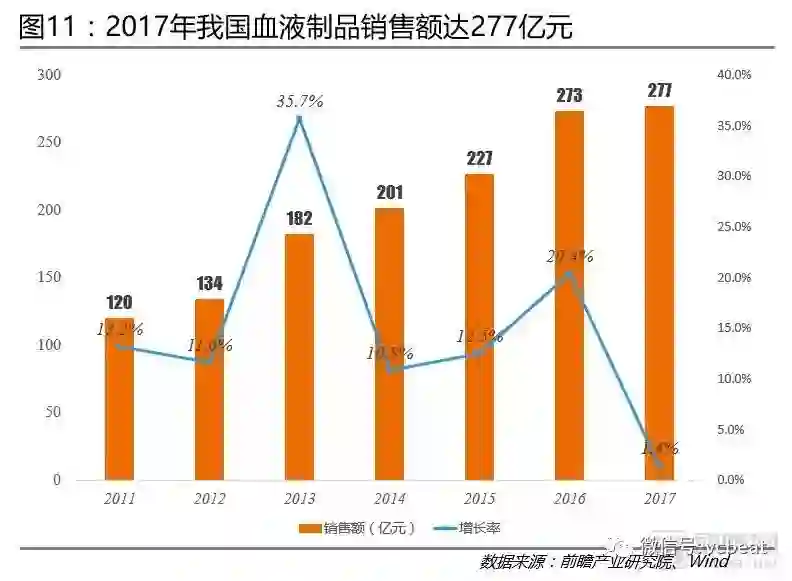 单抗类生物制品年均增速高达39.2%:2011-2017年,我国血液制品、单抗类生物制品销售规模不断扩大,年均复合增长率分别为15.0%、39.2%。