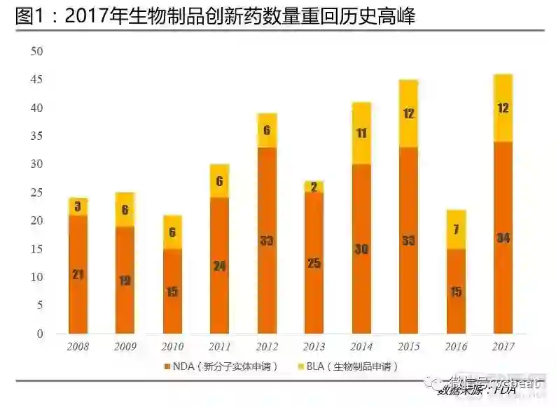 FDA官方公布,2017年CDER(FDA药品审评与研究中心)批准了12个生物制品创新药,重回历史高峰。