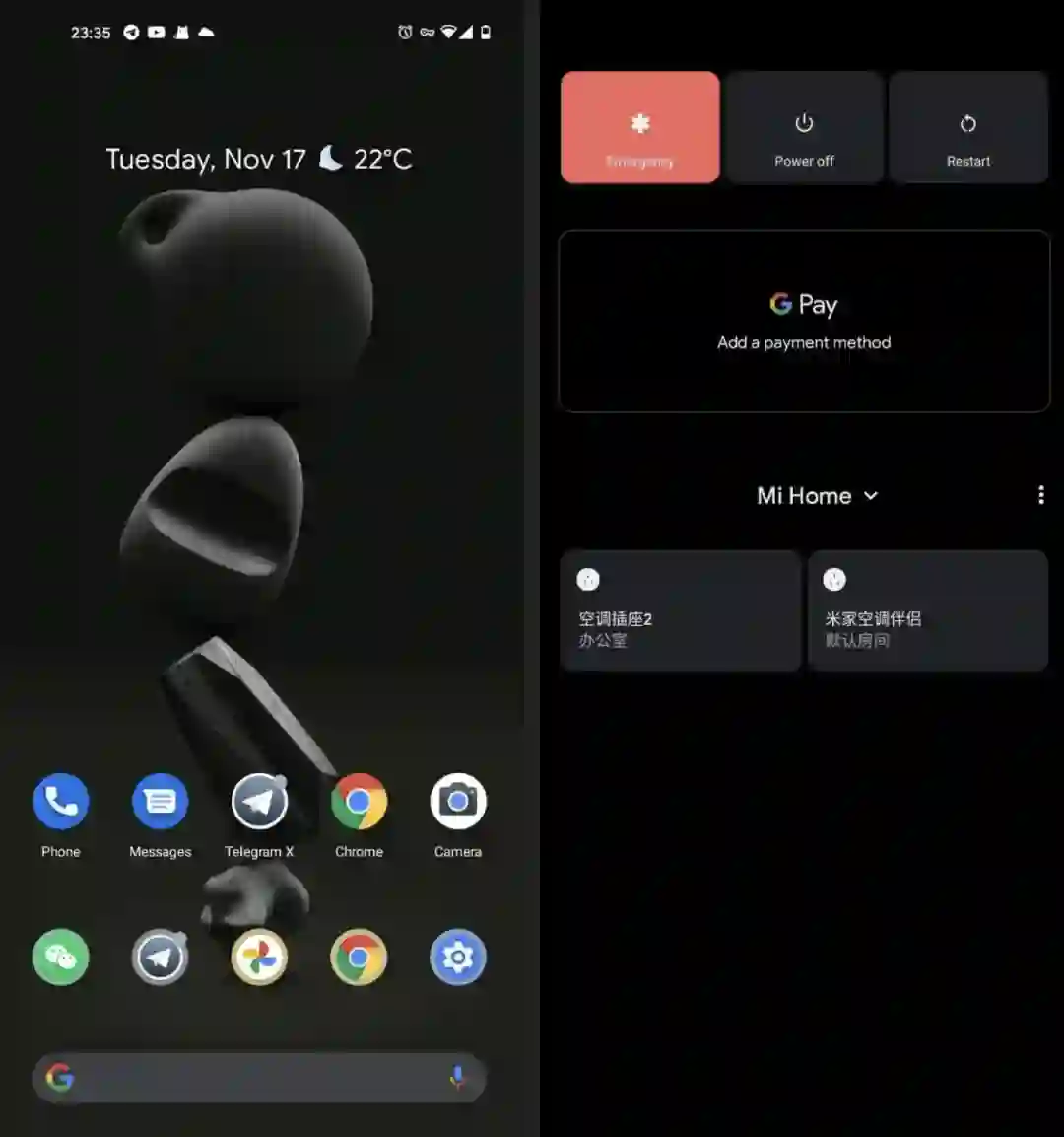 米家适配 Android 11 的电源键菜单真的好棒