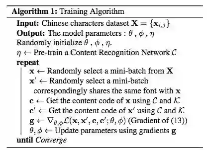 摘要:因其广泛的适用性,自动书写中文字体是一个很具吸引力但又不乏挑战的任务。在这篇论文中,为了灵活地生成汉字,们提出了一个叫做风格感知变分自编码器(Style-Aware Auto-Encoder,SA-VAE)的框架。具体而言,我们建议通过将一个汉字的隐藏特征分解成内容相关和风格相关的成分来捕捉汉字的不同特征。考虑到复杂的形状和结构,我们将结构信息作为先验知识纳入我们的框架来指导结果的生成。通过推理一个字体未知的汉字的风格组成,我们的架构展示出了强大的单样本/少样本(one-shot/low-shot)泛化能力。据我们所知,这是首次尝试仅仅通过观察一个或者少数样本生成新字体汉字的工作。通过融合不同内容和风格的特征向量来生成不同风格的汉字,大量实验证明了这个架构的有效性,这在实际应用中是非常重要的。