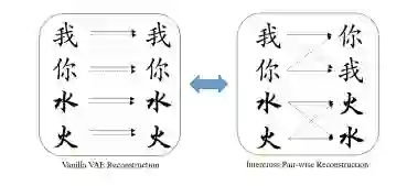 图 6:Vanilla 变分自编码器和我们的交叉逐对训练的对比:实线和虚线分别代表风格提供者和内容提供者。