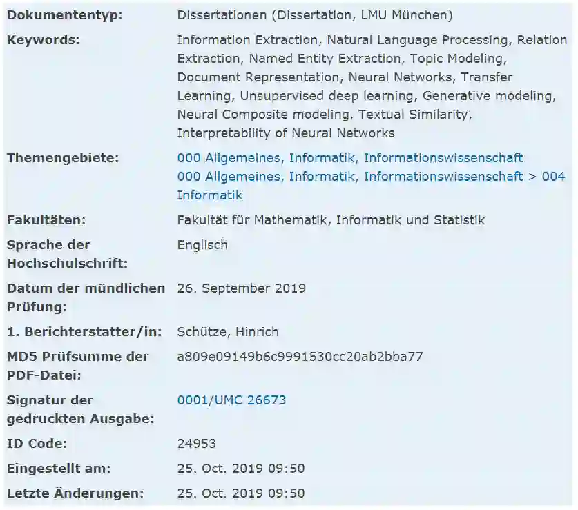 慕尼黑大学LMU博士论文:自然语言文本神经网络信息提取,240页pdf