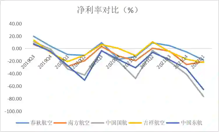 2021年,春秋航空实现盈利,净利率为0.34%,而包括南航、国航、东航在内的多数航空公司净利率均为负数。2022年一季度,春秋航空的净利率为-18.52%,同期南航、国航、东航分别为-21.14%、-76.42%、-65.29%。