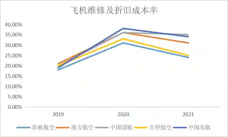 飞机维修及折旧成本率对比;来源:公司公告,36氪整理