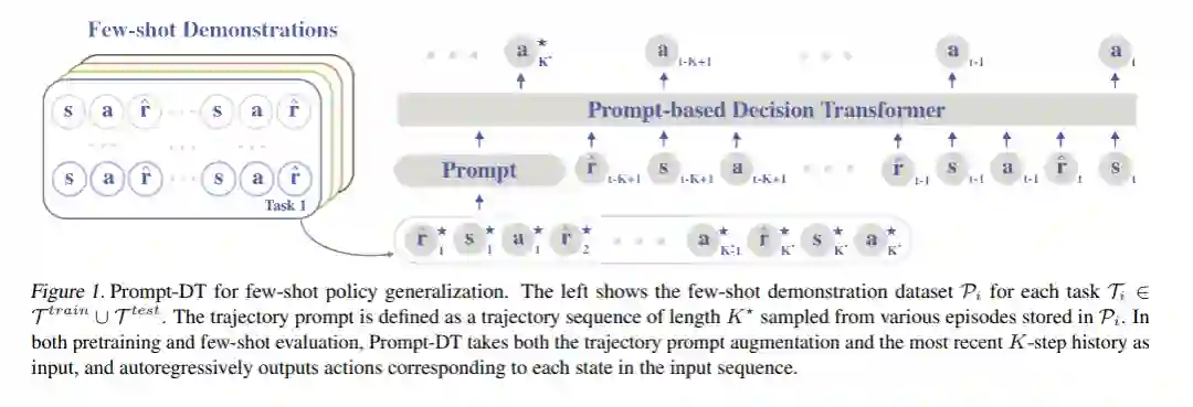 人们可以利用以前的经验,并从少量的演示中学习新的任务。与旨在通过更好的算法设计实现快速适应的离线元强化学习相比,我们研究了架构诱导偏差对少样本学习能力的影响。我们提出了一种基于提示的决策Transformer (Prompt- DT),它利用了Transformer体系结构和提示框架的顺序建模能力,实现离线RL中的少样本适应。我们设计了轨迹提示,其中包含了几个样本的演示片段,并编码了特定任务的信息来指导策略的生成。我们在5个MuJoCo控制基准测试中的实验表明,Prompt-DT是一个强大的少样本学习器,无需对看不见的目标任务进行任何额外的微调。Prompt-D比它的变体和强元离线RL基线有很大的优势,它的轨迹提示只包含几个时间步。Prompt-D对于提示长度的更改也很稳健,并且可以泛化到分布外(OOD)环境。项目页面:https://mxu34.github.io/PromptDT/。