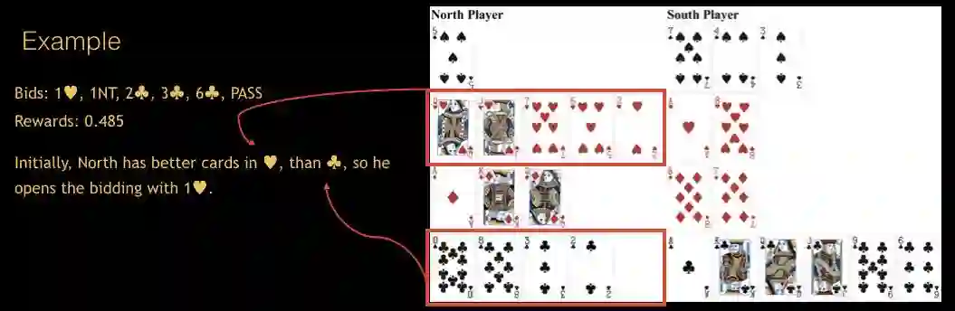 我们让Agent去打桥牌,这个任务很有意思,跟AlphaGo相比有两个大的技术难点: