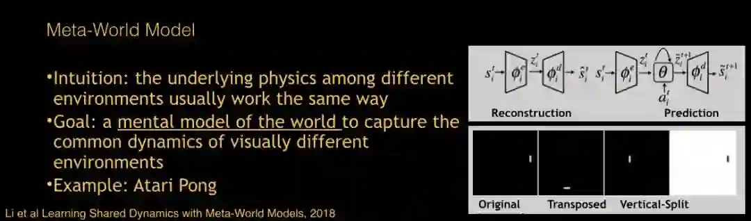 人每天都经历不同的环境,环境世界是有个性的,我们就给单个Agent做了一个Meta-World Model,就是多个世界集合在一起,发现它的共性。当我们学到Meta-World Model以后,Agent就可以想像了,可以做梦了,可以在它的脑子里面去运转了。这个不是从外面采集的,是Agent在它的算法里面不断玩这个游戏的状态,通过它,我们可以去做决策。