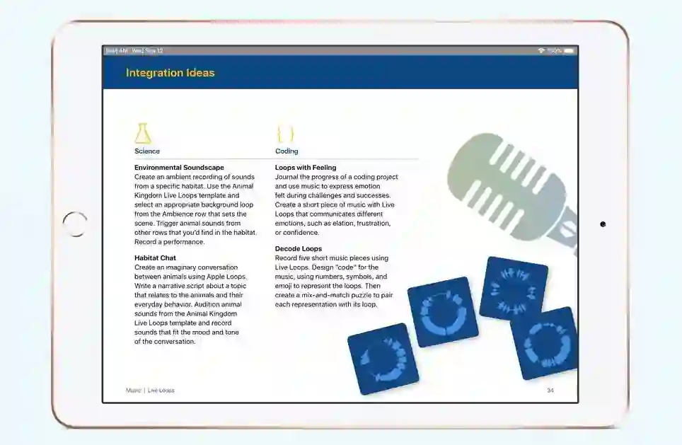 通过使用「音乐」指南及推荐的两款 App:库乐队、Pages,学生可以使用歌曲可以用来讲故事,并通过学习熟悉曲目的节奏、旋律及和声,学生能够逐渐树立信心,开始创作自己的音乐。