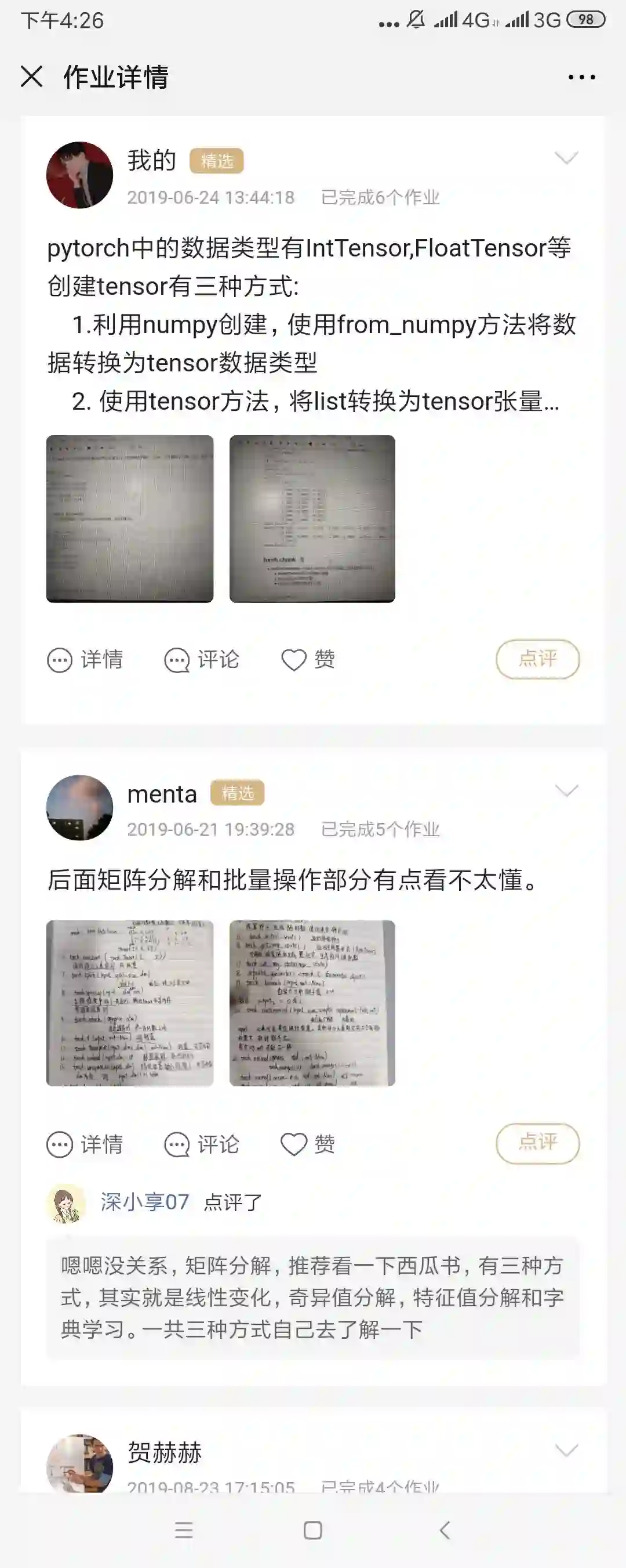 对于优秀作业我们将置顶,助教将进行点评和批改
