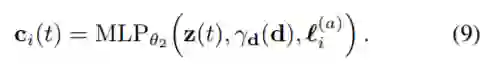 为了使 NeRF 适应变化的光线和光度后处理,研究者在公式 (1) 中引入对期望颜色的图像索引 i 的依赖: