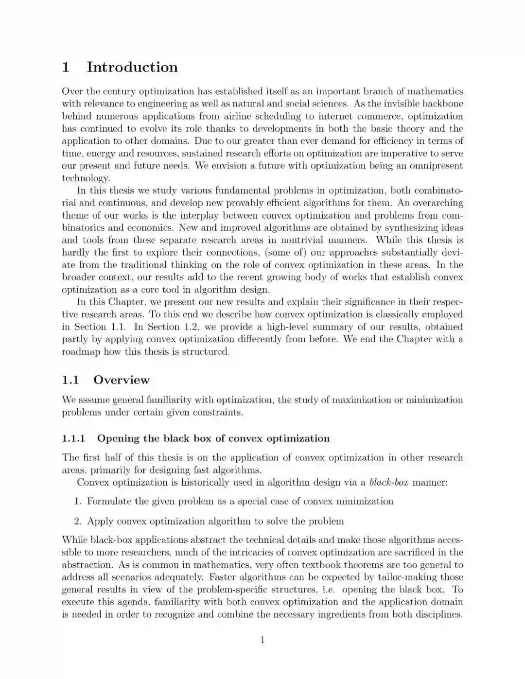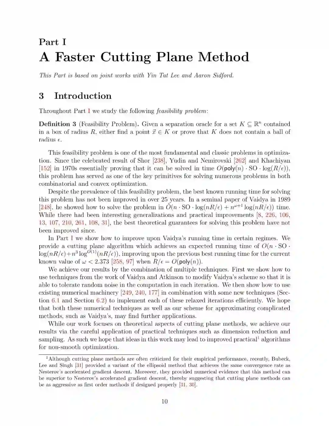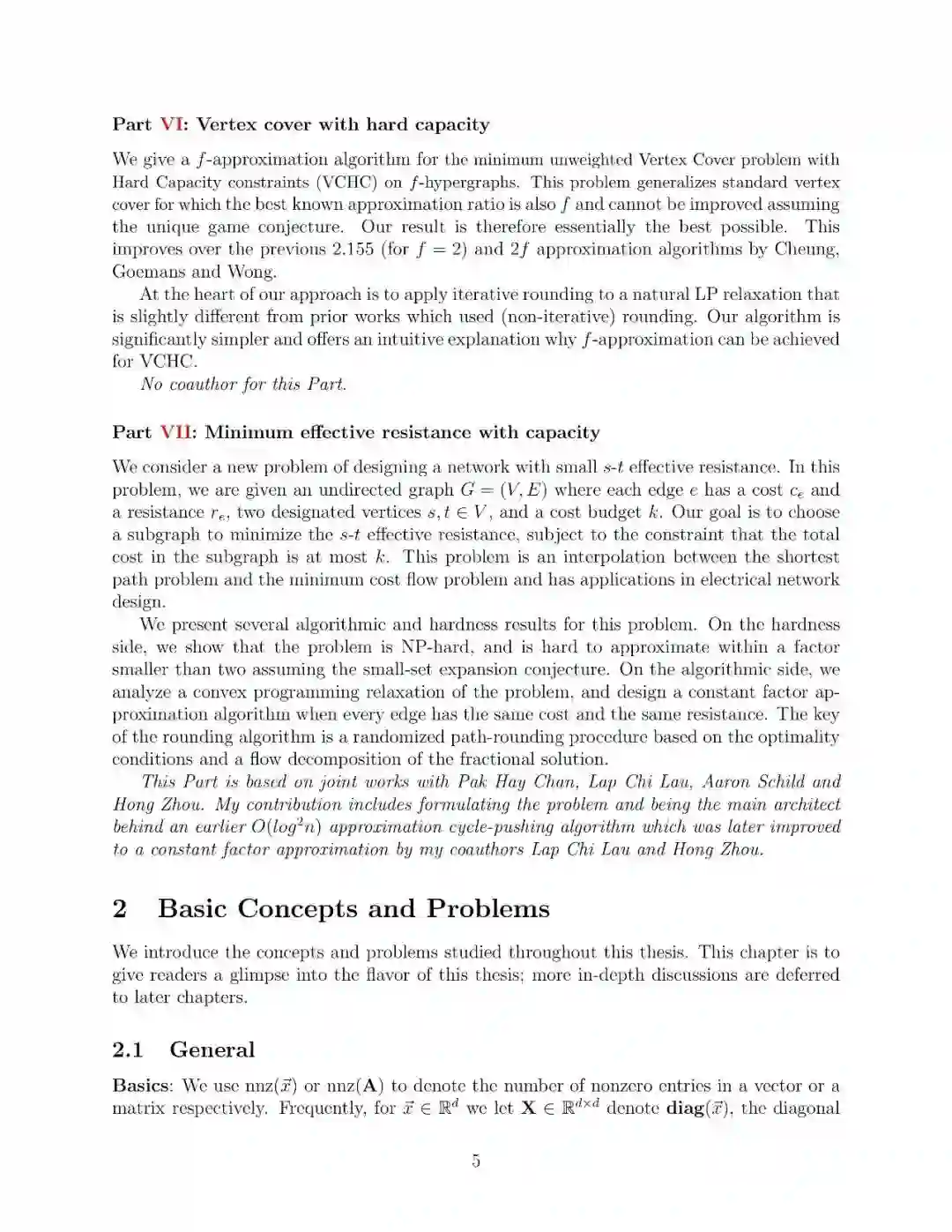 在过去的一个世纪里,最优化已经成为了数学的重要分支,它与工程、自然和社会科学息息相关。作为重要的组成部分,从航空公司的调度到互联网商务,众多应用场景中均隐藏着最优化的影子,随着基础理论的发展,它将持续在多个领域发挥作用。由于现代社会,对于效率的要求要比以往任何时候都要高,因此对优化问题的持续研究至关重要。我们设想在未来,优化技术将无处不在,在本文中,我们研究了优化中的各种基本问题,组合与连续,并开发了新的可被证明的算法。