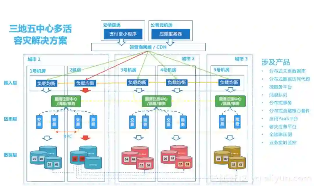 图 7 应用三地五中心多活解决方案