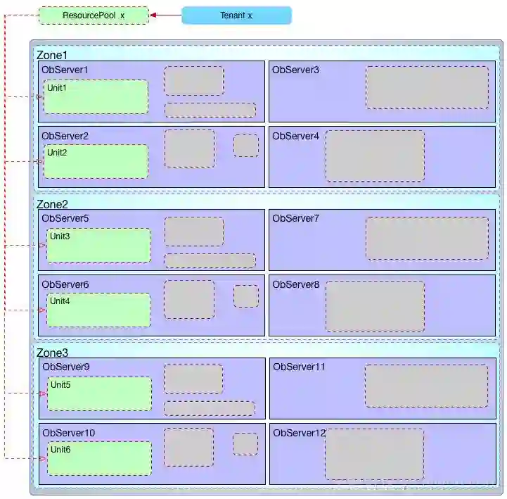 租户里并不知道数据具体在哪个机器上,也可以说没必要知道。只是租户的性能还取决于运维为租户规划的资源池分布情况,所以了解一下资源单元的分布特点对性能规划也是有意义的。