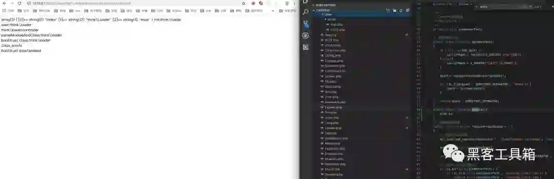 就可以调用thinkLoader 这个namespace下面的esss函数,为了方便测试,我在loader中加了一个esss函数,截图如下