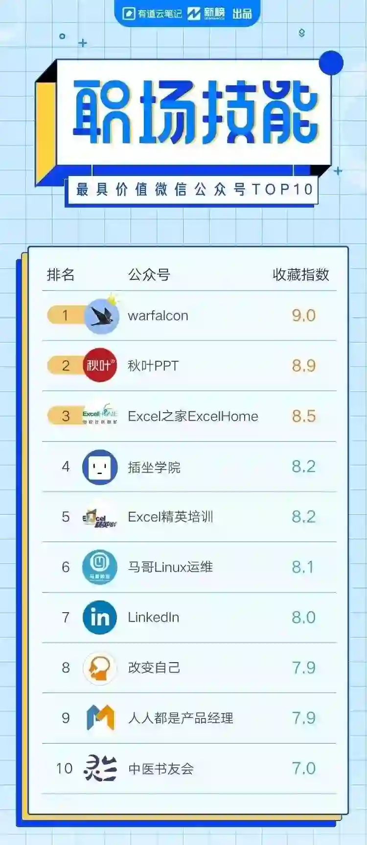有道云笔记发布的「2018年最具价值微信公众号TOP10」中,公众号「插坐学院」,获得「职场技能榜」第4名。