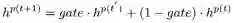 在History-adaption 层,追踪外部知识在对话中的状态对于保持对话的一致性和重复性是重要的。对于外部知识的控制和更新和对话历史是紧密相关的。基于此,我们设计了一个门机制来控制外部信息在对话中的流动。我们循环的更新外部知识同时将其融入到历史中增强对话历史信息,最后我们采用层次循环机制捕捉基于外部知识感知的对话历史信息。