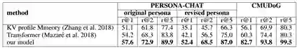 数据集:主要使用persona-chat以及CMU_DoG数据集。其中CMU_DoG数据集由于没有候选答案集,我们从相同的数据集中采样了19个作为负例。这种采样方法很容易和正确答案去区分开,未来的工作中我们会考虑使用数据增强以及其他评价指标的方式生成负例。