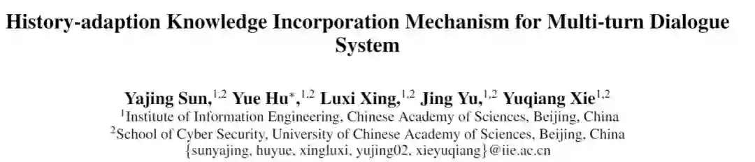 近些年来,大家对于多轮对话中保持对话的一致性和减少重复性的问题。本文介绍中科院信工所孙雅静等人AAAI2020的工作《History-adaption Knowledge Incorporation Mechanism for Multi-turn Dialogue System》,该论文提出了一种history-adaption knowledge incorporation 机制,动态的考虑对话历史和知识之间的信息相互传递,增强检索式对话中的对话一致性以及避免重复性。