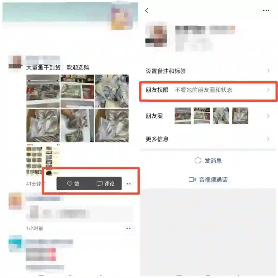 我们刷朋友圈的时候,互动方式只有点赞和评论这两个动作,不感兴趣就是划过不看,如果实在是讨厌一个人发的内容(比如微商发的广告),就需要点击那个人的名字或头像进入个人信息页,再去设置不看TA的朋友圈。
