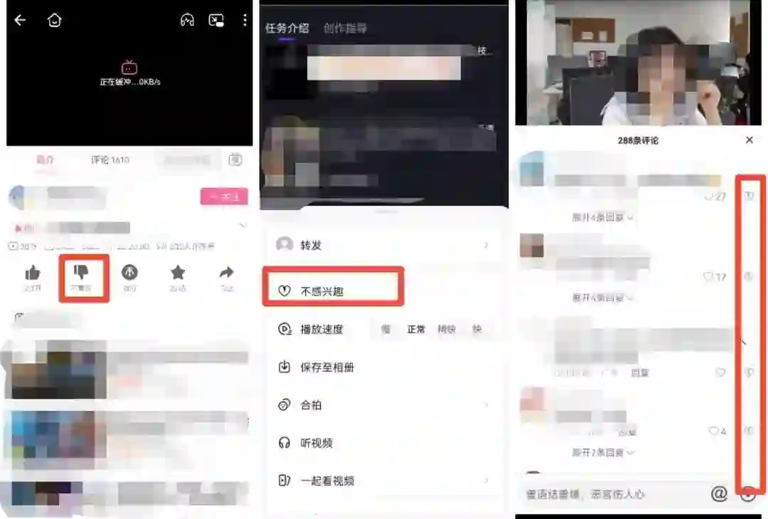 (B站的“不喜欢”、抖音视频的“不感兴趣”和评论区的点踩按钮)