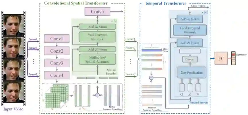 人脸表情识别旨在通过对面部行为的识别从而分析目标对象的情感状态,具体的任务是将一张人脸图片或者一段面部视频分类为七类基本情感之一,即,中性、高兴、悲伤、伤心、惊讶、害怕、厌恶、以及生气。由于面部表情本质上是面部动作变化,而其本身就是动态的,因此基于视频序列的面部动作变化可以更好地描述表情。相对于实验室场景下的动态表情识别,自然场景存在着遮挡、非正脸、和头部运动等问题,但更具有研究价值。基于此,本文提出了基于Transformer的识别网络用于自然场景下的动态人脸表情识别。