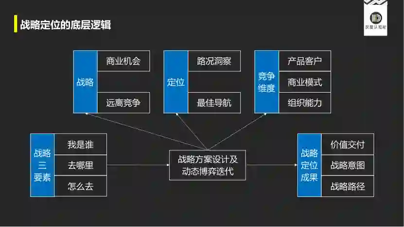 战略定位,是指全局价值的谋略。包括:战略、定位、竞争维度等底层逻辑。