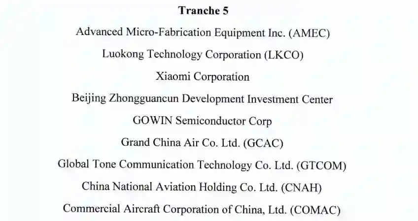 1 月 14 日,小米等 9 家中国企业被美国国防部列入「与中国军方相关」的黑名单,分别为:中微半导体设备(AMEC)、箩筐技术公司(LKCO)、小米、北京中关村发展投资中心、高云半导体(Gowin)、大新华航空有限公司(GCAC)、中译语通科技股份有限公司(GTCOM)、中国航空集团有限公司(CNAH)和中国商飞(COMAC)。