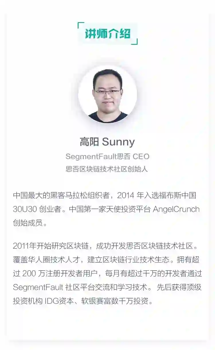 SegmentFault思否是一个面向软件开发者的技术交流社区,拥有有200多万的软件开发者用户。对于区块链的技术原理及应用场景研究,集合了无数技术极客的智慧精华。同时高阳也是一位7年的区块链资深研究者,拥有丰富的数字货币交易经验。