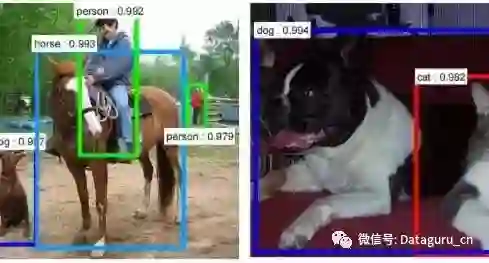 与分类相比,这个问题要稍微复杂一点,你必须对图像进行更多的操作和处理。现在最著名检测方法叫做Faster-RCNN。RCNN是局部卷积神经网络,它使用一种称为候选区域生成网络(Region Proposal Network,RPN)的技术,实际上是将图像中需要处理和分类的区域局部化。后来RCNN经过调整效率得以调高,现在称之为faster – RCNN,一种用作候选区域生成方法的一部分用以生成局部的卷积神经网络。目前的image-net挑战(LSVRC 2017)有一个目标检测的挑战赛的冠军,被一个名为“BDAT”的团队所囊括,该团队包括来自南京信息工程大学和伦敦帝国理工学院的人员。