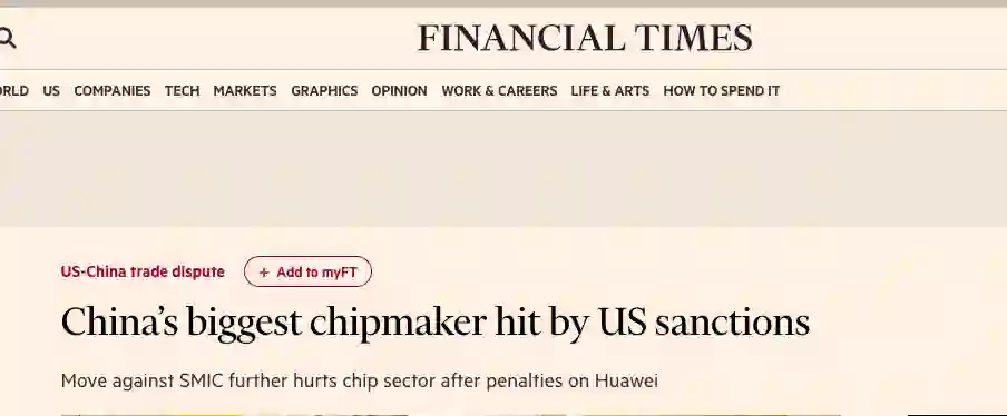 《金融时报》最新报道称,中国最大的芯片制造商中芯国际受到美国制裁重创。